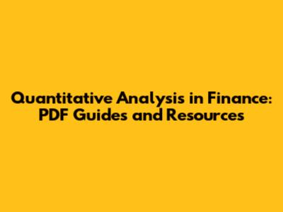 Quantitative Finance Analysis: PDF Guides & Resources