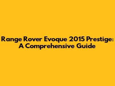 Range Rover Evoque 2015 Prestige: A Comprehensive Guide