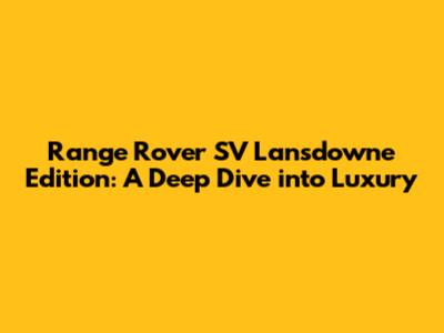 Hey there, car enthusiasts! Ever heard of the Range Rover SV Lansdowne Edition? If you're into the finer things in life, then you're in for a treat. This isn't just any Range Rover; it's a statement. A statement of luxury, exclusivity, and impeccable design. Today, we're diving deep into what makes the SV Lansdowne Edition so special, exploring its unique features, and why it's a top contender for those seeking the ultimate driving experience. Buckle up, guys, because we're about to embark on a journey into the world of automotive opulence.