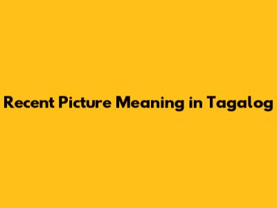 Recent Picture In Tagalog: Meaning And Usage