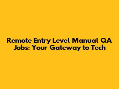 Remote Entry Level Manual QA Jobs: Your Gateway To Tech