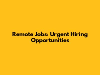 Remote Jobs: Urgent Hiring Opportunities