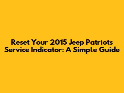 Hey guys! So, you're looking to reset the service indicator light on your 2015 Jeep Patriot, huh? Don't sweat it; it's a pretty straightforward process. This guide will walk you through how to easily reset that pesky light and get your Patriot back to its glory. We'll cover everything, from the basic steps to what you need to know to keep your Jeep running smoothly. Let's dive in! Resetting the service indicator isn't just about getting rid of a light; it's about keeping track of your vehicle's maintenance schedule. Regular maintenance is super important to keep your Jeep in tip-top shape, ensuring it runs reliably and efficiently. Ignoring the service indicator light can lead to missed maintenance, potentially causing more significant and costly issues down the road. That little light is your friendly reminder to take care of your car! Before you begin, it’s always a good idea to have your owner's manual handy. It provides specific details about your vehicle and any potential variations in the reset procedure. While the steps outlined here generally apply to the 2015 Jeep Patriot, your manual is the ultimate source of truth. Make sure your Patriot is parked on a level surface and the parking brake is engaged before you start the reset process. Safety first, always! Also, consider jotting down the current mileage. This helps you track when the next service is due. Being proactive about your car’s maintenance not only keeps it running well but also increases its resale value. It shows potential buyers that you've cared for the vehicle, which can make a big difference when it's time to sell.