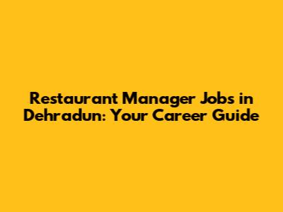 Restaurant Manager Jobs In Dehradun: Your Career Guide