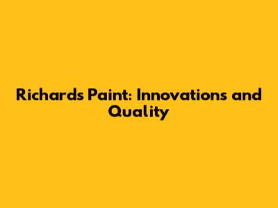 Richard's Paint: Innovations And Quality