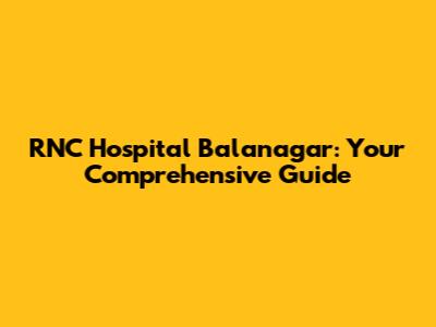 RNC Hospital Balanagar: Your Guide