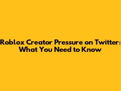 Roblox Creator Pressure On Twitter: What You Need To Know