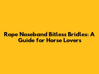 Rope Noseband Bitless Bridles: A Guide For Horse Lovers