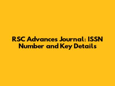 RSC Advances Journal: ISSN Number And Key Details
