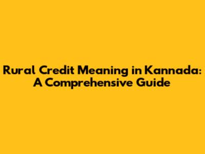 Rural Credit Meaning In Kannada: A Comprehensive Guide
