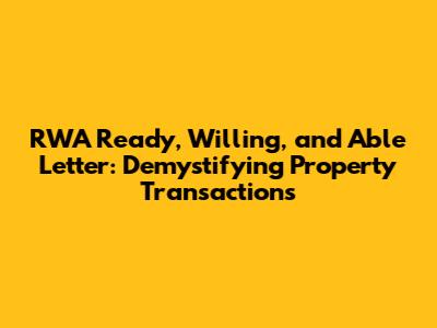 Hey there, property enthusiasts! Ever heard of an RWA (Ready, Willing, and Able) letter? If you're knee-deep in the world of real estate, whether you're a seasoned investor or just dipping your toes in, this document is something you need to understand. Think of it as a crucial piece of the puzzle in property transactions. Let's break down everything about RWA letters, making sure you're well-equipped to navigate the complexities of real estate with confidence.