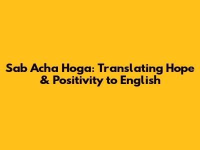 Translating "Sab Acha Hoga" into English requires more than just finding equivalent words; it's about capturing the essence of hope, resilience, and cultural understanding. Whether you choose "Everything will be alright," "Things will get better," or another alternative, remember to add context, tone, and cultural sensitivity to your message. By doing so, you can effectively convey the heartfelt sentiment behind this powerful phrase and offer genuine comfort and encouragement to those who need it. So, the next time you want to share a message of hope, remember the spirit of "Sab Acha Hoga" and let your words shine with positivity and empathy! You got this, and everything will be alright!