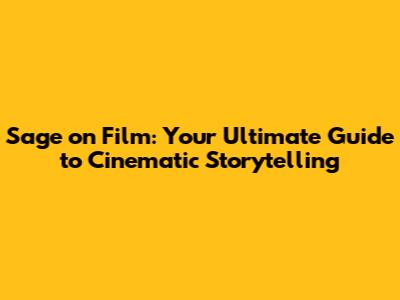 Sage On Film: Your Ultimate Guide To Cinematic Storytelling