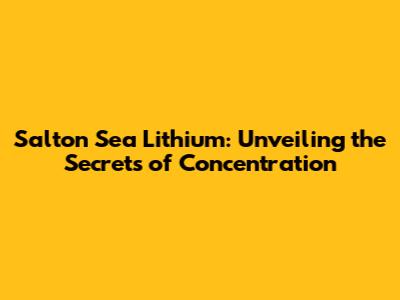 Salton Sea Lithium: A Deep Dive Into Concentration