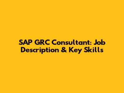 SAP GRC Consultant: Job Description & Key Skills