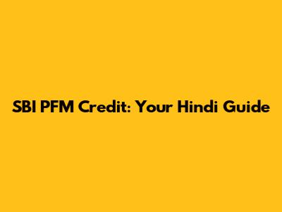 SBI PFM Credit: Your Hindi Guide