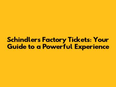 Schindler's Factory Tickets: Your Guide To A Powerful Experience