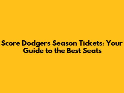 Score Dodgers Season Tickets: Your Guide To The Best Seats