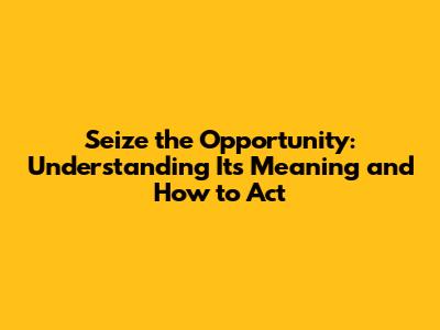 What Does "Seize the Opportunity" Truly Mean?