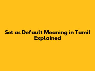 Set As Default: Meaning In Tamil Explained