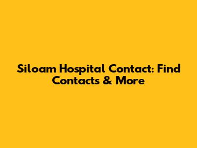 Siloam Hospital Contact: Find Contacts & More