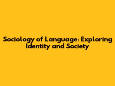 Sociology Of Language: Exploring Identity And Society