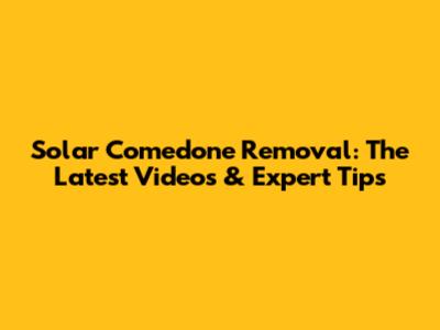 Solar Comedone Removal: The Latest Videos & Expert Tips