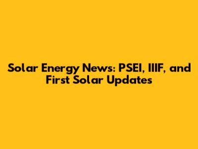Solar Energy News: PSEI, IIIF, And First Solar Updates