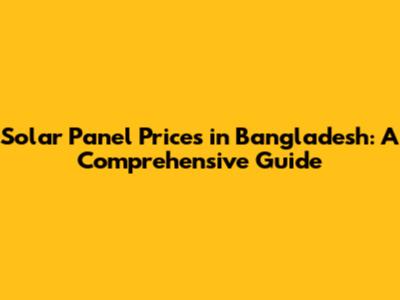 Solar Panel Prices In Bangladesh: A Comprehensive Guide