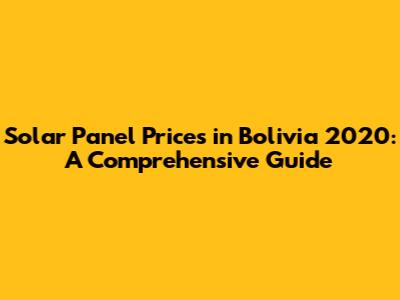 Solar Panel Prices In Bolivia 2020: A Comprehensive Guide