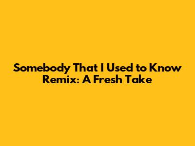 Somebody That I Used To Know Remix: A Fresh Take