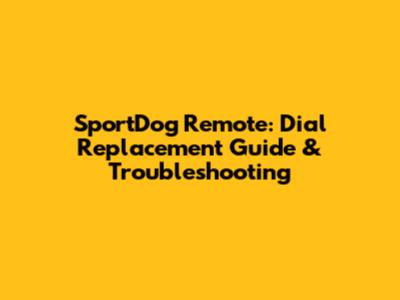 SportDog Remote: Dial Replacement Guide & Troubleshooting