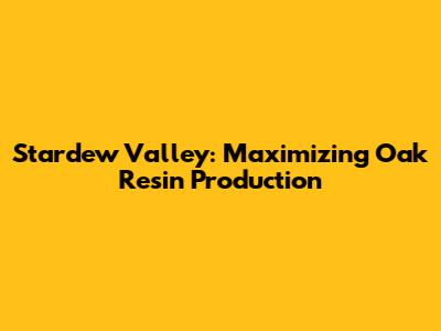 Stardew Valley: Maximizing Oak Resin Production