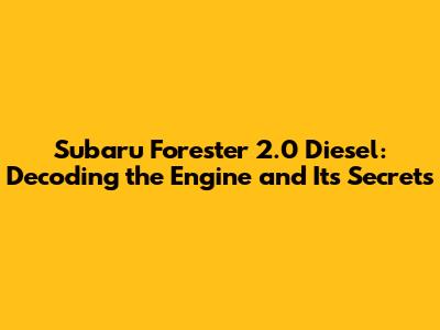 Understanding the Subaru Forester 2.0 Diesel Engine