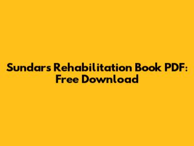 Sundar's Rehabilitation Book PDF: Free Download