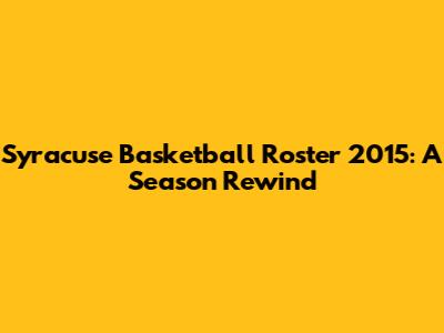 Syracuse Basketball Roster 2015: A Season Rewind