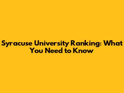 Syracuse University Ranking: What You Need To Know
