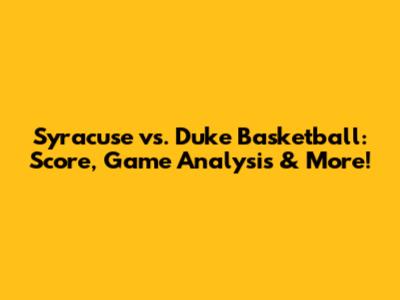 Syracuse Vs. Duke: Basketball Score, Game Analysis & More!