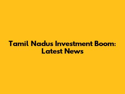 Tamil Nadu's Investment Boom: Latest News