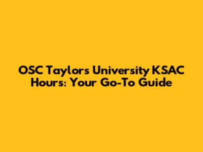 Taylor's University KSAC Hours: OSC Guide