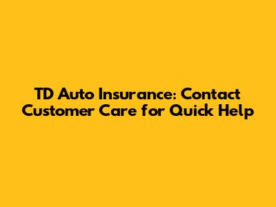 TD Auto Insurance: Contact Customer Care For Quick Help