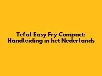 Tefal Easy Fry Compact: Handleiding In Het Nederlands