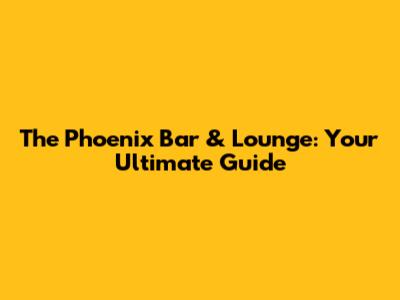 The Phoenix Bar & Lounge: Your Ultimate Guide
