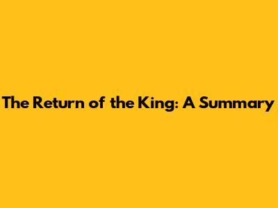 The Return Of The King: A Summary