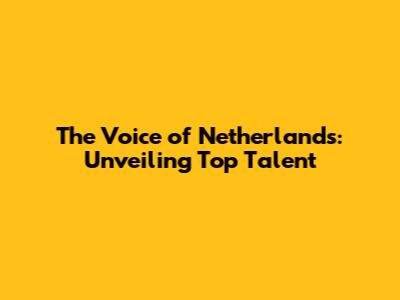 The Voice Of Netherlands: Unveiling Top Talent