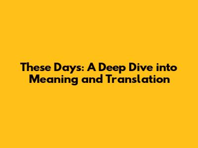 These Days: A Deep Dive Into Meaning And Translation