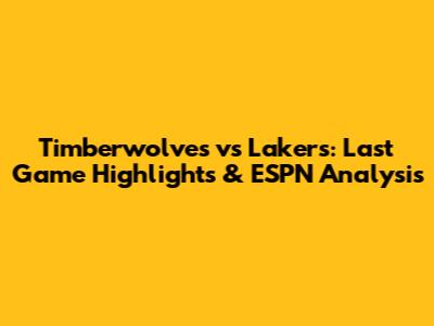 Timberwolves Vs Lakers: Last Game Highlights & ESPN Analysis