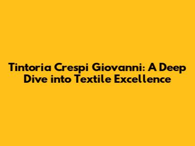 Hey there, textile enthusiasts! Let's dive into the world of Tintoria Crespi Giovanni ec srl, a name that resonates with quality and innovation in the textile industry. This isn't just a company; it's a testament to decades of experience, a commitment to cutting-edge technology, and a dedication to sustainability. We'll explore what makes Tintoria Crespi Giovanni a leader, from its rich history to its future-forward approach, providing you with a comprehensive look at their operations, services, and impact on the textile world. Get ready for an informative journey through the fabric of their success!