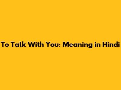 To Talk With You: Meaning In Hindi
