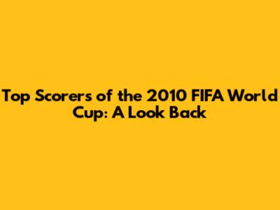 Top Scorers Of The 2010 FIFA World Cup: A Look Back